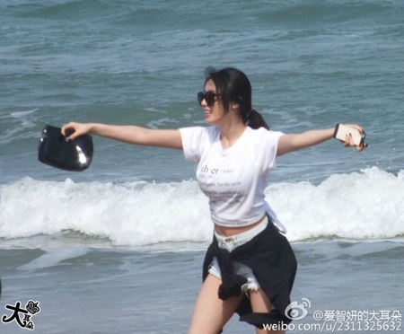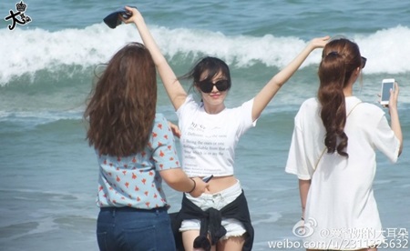 게시물 속 사진은 중국의 한 네티즌이 자신의 웨이보에 올린 사진으로, 지연과 티아라 멤버들이 바닷가에서 사진을 찍으면서 여유로운 한 때를 보내고 있는 모습이 담겼다.