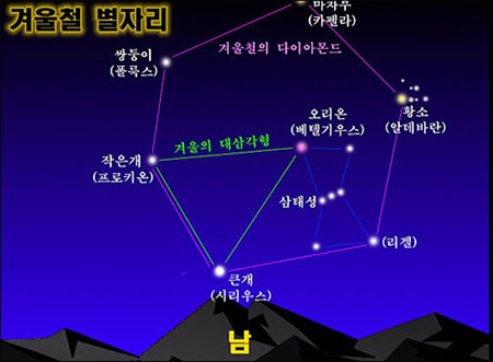겨울철 별자리. 출처ㅣ온라인 커뮤니티