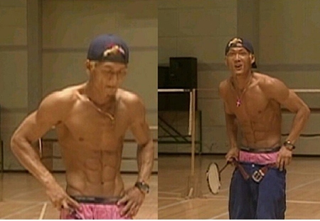 공개된 사진 속 박준형은 올해 나이 46살이라고는 믿기 어려울 정도의 완벽한 복근을 자랑한다. 특히 핑크빛 속옷을 노출해 눈길을 끈다.