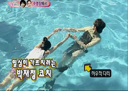 당시 파트너였던 박재정은 이 모습을 보고 당황하기도. 사실 유이는 체육고등학교 출신의 수영선수였고, 이를 숨긴 유이의 계략에 박재정은 열심히 유이에게 수영을 가르치는 장면이 방송되며 폭소를 자아냈었다.