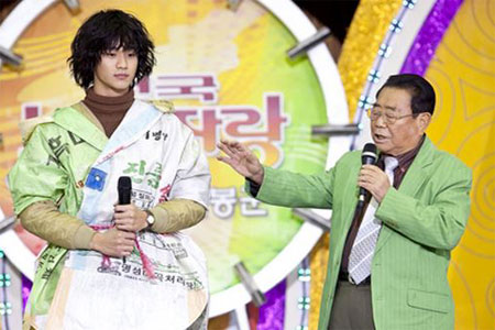 이에 송해는 무대에 음정, 박자가 모두 틀리며 노래를 부르는 삼동을 향해 "노래를 똑바로 하라"며 일침을 가하는 연기를 소화해 눈길을 끌었다.