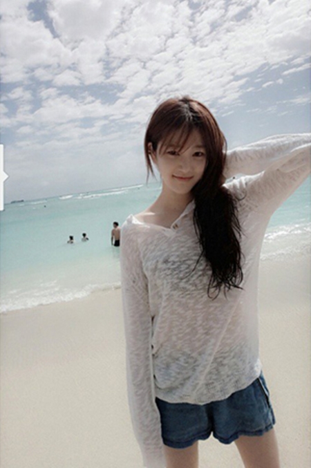 이유비는 14일 자신의 인스타그램에 '하루 종일 서핑하느라 사진 한 장 안 찍어서 와이키키왔다는 인증샷 하나 찰칵했는데 구름이랑 바다랑 모래가 정말 예쁘게 나왔다'라는 글과 함께 한 장의 자신을 게재했다.