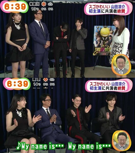 공개된 사진 속에는 일본의 한 예능 프로그램에 출연한 강지영의 모습이 담겼다. 양쪽 어깨가 드러나는 민소매 의상과 짧은 치마를 입고 있는 강지영은 남성 출연자들과 비슷한 신장으로 눈길을 끈다.
