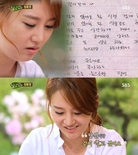 장윤정은 지난 2013년 방송된 SBS 예능프로그램 '힐링캠프, 기쁘지 아니한가'에 출연해 도경완 KBS 아나운서와 만남부터 결혼까지 연애 풀스토리를 전한 후 직접 쓴 손편지로 마음을 전했다.
