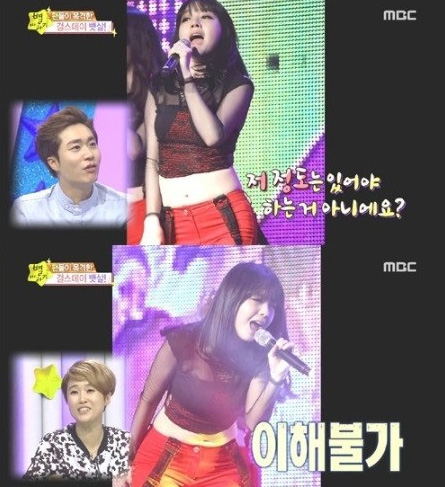 당시 방송에서 민아는 뱃살 굴욕 사진이 공개되자 쿠션을 집어던지며 발끈하는 모습을 보였고, 조성모와 송은이는 "저 정도는 원래 있어야 하는 거 아니냐?", "나는 이걸 뱃살이라고 공개한다는 게 이해가 안 된다"라며 민아를 위로했다.