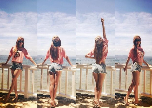 공개된 사진 속 한지은은 늘씬한 뒤태를 뽐내고 있으며, 핫팬츠 탓에 엉밑살까지 노출돼 눈길을 끈다.