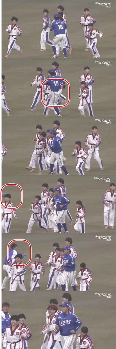 리허설이 펼쳐지고 있을 당시에는 삼성 선수들의 그라운드 훈련이 진행되고 있었다. 이 모습을 지켜보던 박석민은 태권도 리허설이 끝나자 아이들에게 달려가 장난스럽게 발길질을 하며 유쾌한 모습을 보였다. 옆에 있던 김상수도 박석민 옆에서 '태권도' 자세를 취하며 아이들에게 웃음을 선사했다.