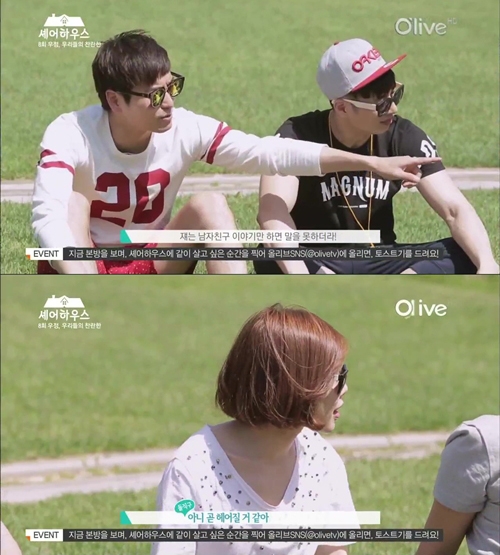 이날 방송에서 채리나는 '셰어하우스'의 집을 둘러보던 중 당시 개그맨 양상국과 공개 연애 중이던 천이슬에게 "남자친구 데려오고 싶겠다"고 말했다.