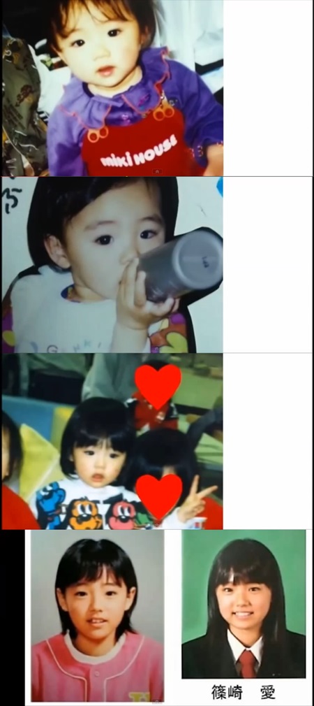아주 아기 시절에도 초롱초롱한 눈망울과 뽀얀 피부를 자랑하고 있는 시노자키 아이는 나이가 들어도 변함없는 미모로 시선을 강탈하고 있다.