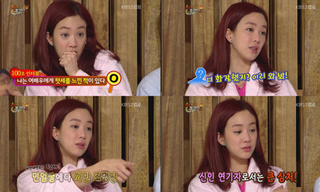 지난 2012년 1월 12일 방송된 KBS 예능프로그램 '해피투게더'에 출연한 정려원은 가수 출신 연기자로서 고충을 털어놨다.