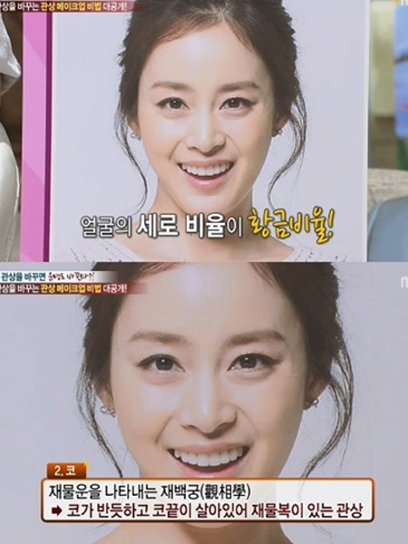 이날 방송은 관상 특집으로 진행됐고 관상 전문가가 출연해 최고 관상 스타로 김태희를 소개했다. 관상 전문가는 "김태희는 얼굴 세로비율이 황금비율이다. 이마가 도톰하면서 빛이 나 부모운과 직업운이 좋다. 코가 반듯해 재물복이 있는 관상이다. 관상학자에 따라 생각이 다를 수 있다"고 설명했다.