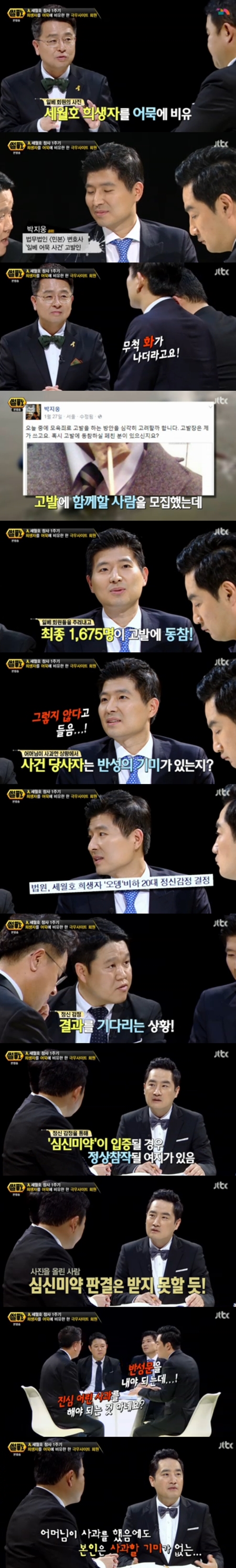 16일 방송된 JTBC 시사교양 프로그램 '썰전-독한 혀들의 전쟁'에서는 세월호 참사 1주기를 맞아 '일베 어묵 사건'을 고발한 박지웅 변호사가 출연했다.