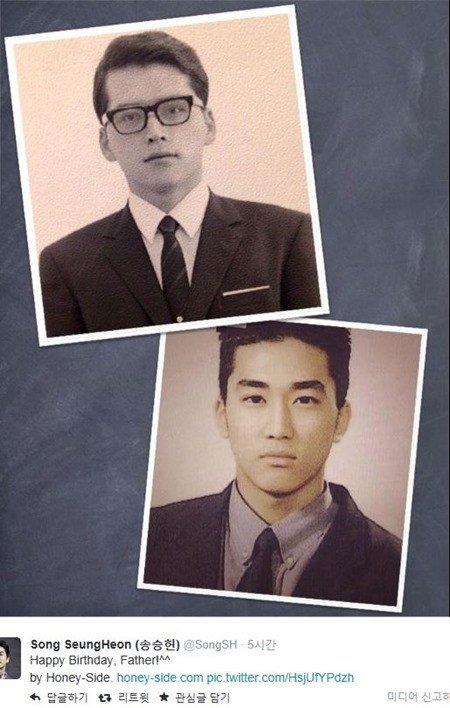 지난해 9월 송승헌은 자신의 트위터를 통해 "생신 축하 드립니다. 아버지"라는 짧은 글과 함께 한 장의 사진을 게재했다.