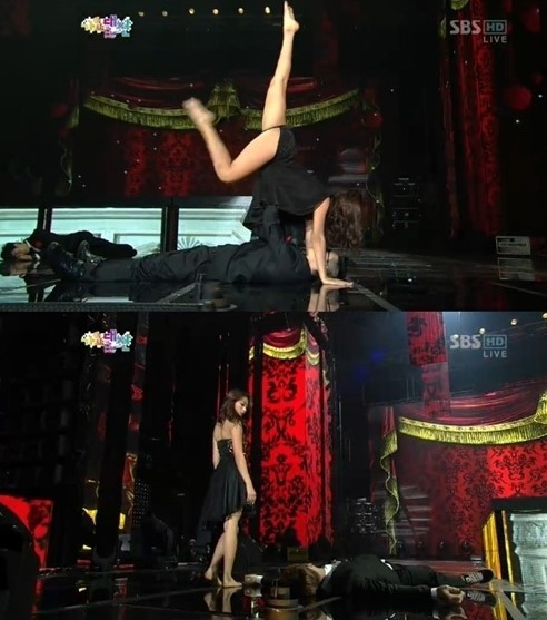 씨스타 보라는 원피스를 입고 맨발로 무대에 오른 뒤 과감한 텀블링을 선보였으며, 속바지까지 노출하는 등 파격 퍼포먼스로 시선을 사로잡았다.