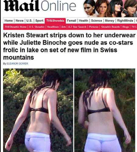 영국 발행 조간신문 데일리메일은 지난 2013년 '실스 마리아'를 촬영하던 크리스틴 스튜어트가 속옷을 노출했다고 보도했다.