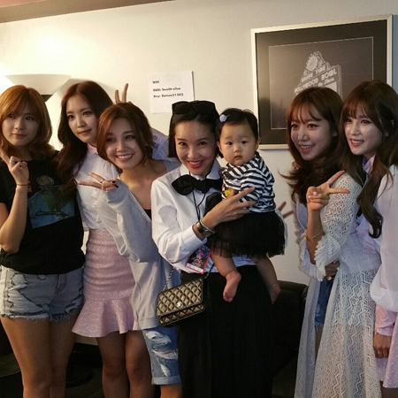 공개된 사진 속에는 카메라를 향해 밝은 미소를 짓고 있는 유리와 딸 사리하 양의 모습이 담겼다. 그의 옆으로 에이핑크 멤버들이 눈부신 미모를 발산하며 깜찍한 포즈를 취하고 있어 눈길을 끈다.