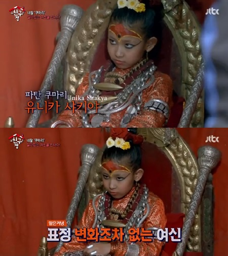 16일 방송된 JTBC '내 친구의 집은 어디인가'에서는 살아있는 쿠마리 여신 유니카 샤키야의 모습이 공개됐다.