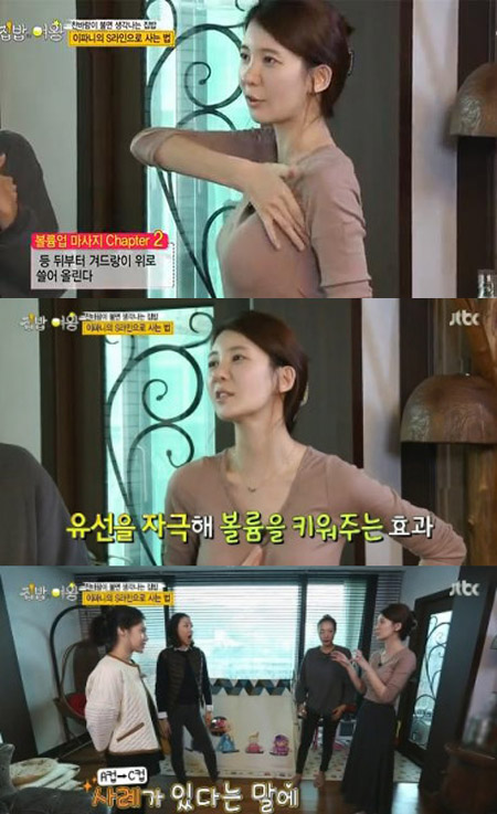 비키는 이파니의 시범을 따라하며 "이파니 씨는 굴곡이 있는데 나는 없다"고 말해 웃음을 자아냈고 이날 게스트 중 유일한 미혼인 배다해는 이 마사지를 보고 민망해하며 "절대 못한다"고 경악해 웃음을 자아냈다.