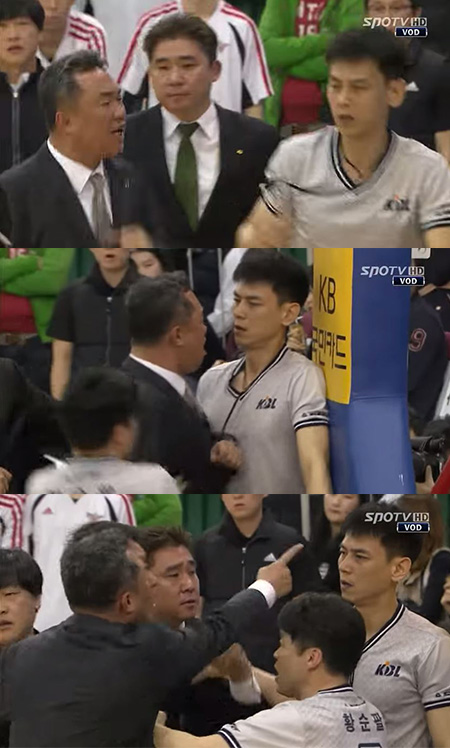 전창진 감독은 1쿼터 5분 51초께 LG 데이본 제퍼슨의 득점 상황서 조성민이 쓰러졌지만 심판이 아무런 반응을 하지 않자 달려가 벽에 밀치거나 삿대질을 하는 등 거칠게 항의했다. 이 항의에 대해 김도명 심판은 전창진 감독에게 테크니컬 파울 2개를 선언, 전창진 감독을 결국 퇴장시켰다.