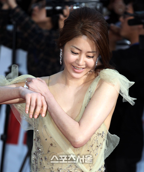 이날 뽀얀 피부가 돋보이는 누드 컬러의 롱 드레스를 입고 등장한 고현정은 얇은 쉬폰과 속이 훤히 비치는 매쉬 소재 누드톤에 꽃무늬 패턴을 더해 고혹적인 매력을 한껏 과시했다. 특히 가슴라인을 훤히 드러낸 고현정은 어깨끈이 흘러내리는 모습이 카메라에 포착돼 남성 팬들의 상상력을 자극했다.