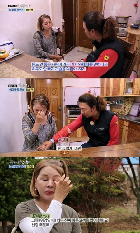 이에 김화란은 "서울에 있던 시절 남편은 위암을 진단받았다. 스트레스와 음주 때문이었다"며 "신랑한테 많이 의지를 했다. 위암 선고를 받은 후 갑자기 무서워지더라"며 눈물을 흘렸다.