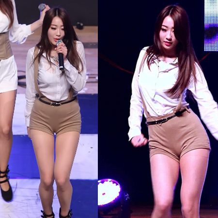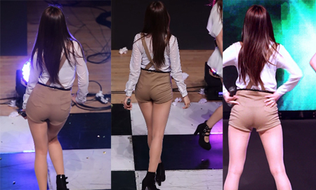 경리는 멤버 중에서도 특히 의상이 과도하게 짧은 탓에 엉덩이 밑 부분이 노출되고 속옷 라인이 그대로 드러나 눈길을 끌었다.