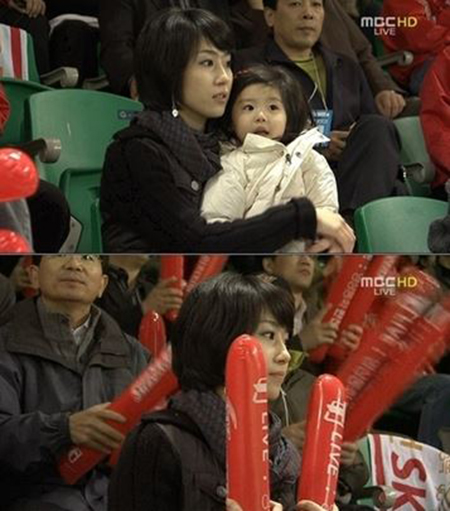 공개된 사진 속 이호준 부인은 지난 2007년도 당시 딸과 함께 이호준 선수의 경기를 지켜보고 있는 모습이다.