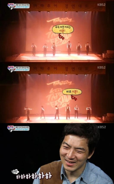 송일국은 2년 전 아내 정승연 판사와 함께 아마추어 탭댄스 대회에 출전했던 사실을 밝혔다. 이어 방송에서는 송일국·정승연 부부가 출전한 탭댄스 대회 영상이 함께 공개됐다.