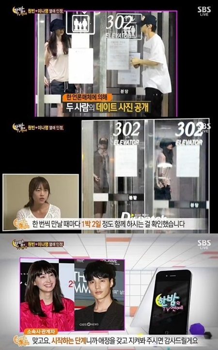 지난 2013년 7월 방송된 SBS '한밤의 TV연예'는 배우 원빈과 이나영의 열애 사실을 전했다.