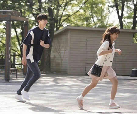 공개된 사진 속 김소현은 함박 미소를 지은 채 남주혁으로부터 달아나고 있는 모습이다.