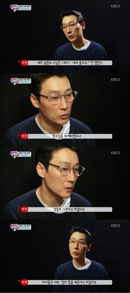 이휘재는 제작진과 인터뷰에서 "매우 놀랐다. 사실은 제가 '내려 줄까요'만 했지. 그가 직접 얘기할 줄 몰랐다"라며 놀라워했다.