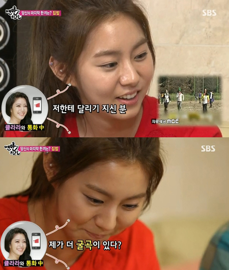 윤종신은 "유이에 대해 어떻게 생각해요? 유이가 클라라 언니 온다니까 바짝 긴장을 한 거에요"라고 말하자, 클라라는 "아, 제가 불리하죠"라고 답했다.