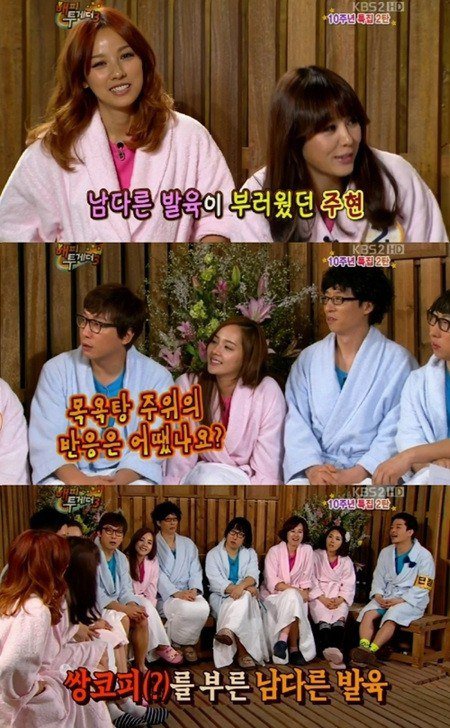 이어 옥주현은 핑클 멤버들과 사우나를 갔던 일화를 공개하며 "그때 처음으로 멤버들의 다 벗은 몸을 봤다. 정말 깜짝 놀랐다. 효리 언니의 벗은 몸을 보고 쌍코피가 터졌다"고 말해 이효리의 놀라운 볼륨 몸매를 짐작하게 했다.
