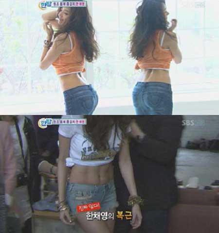 이날 방송에서 한채영은 보정을 하지 않아도 될 만큼 군살 없는 무보정 몸매에 명품 복근으로 시청자들의 시선을 끌었다.
