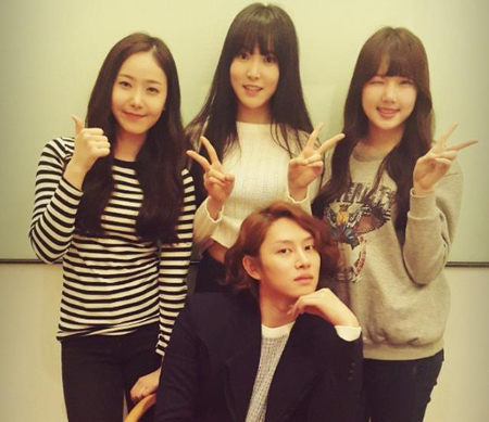 이 가운데 최근 그와 함께 사진을 찍은 걸그룹 카라의 구하라, 소녀시대의 유리, EXID의 하니와 혜린 그리고 씨스타의 보라까지 김희철의 여장한 미모에 밀린 모습으로 굴욕을 맛봤다.