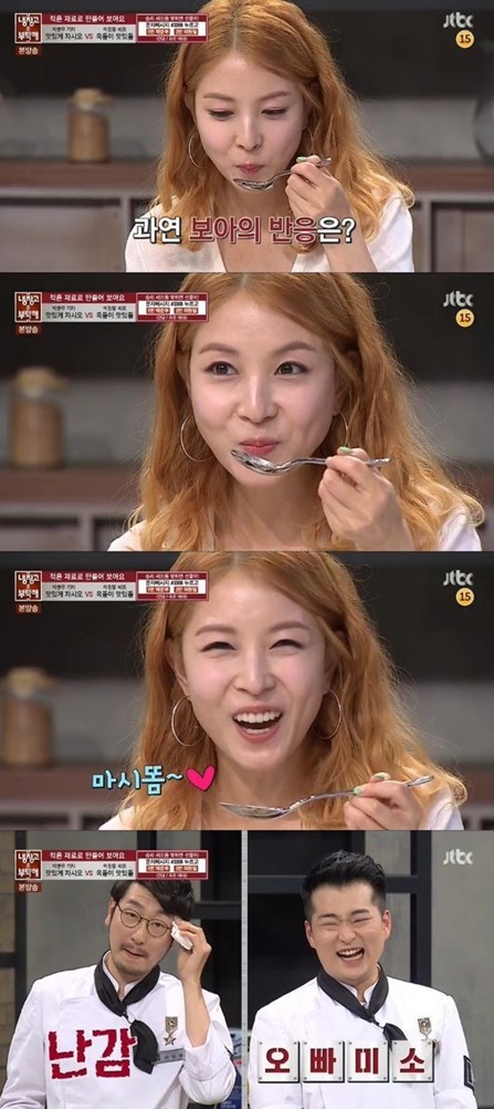 이후 먼저 완성된 이원일 셰프의 어죽을 맛본 보아는 "고소하고 오묘하다. 죽이는 맛이다"라면서 "맛있똠!"이라고 외쳐 만족감을 나타냈고, 이원일 셰프의 승리를 선언했다.