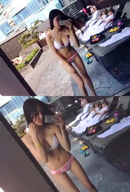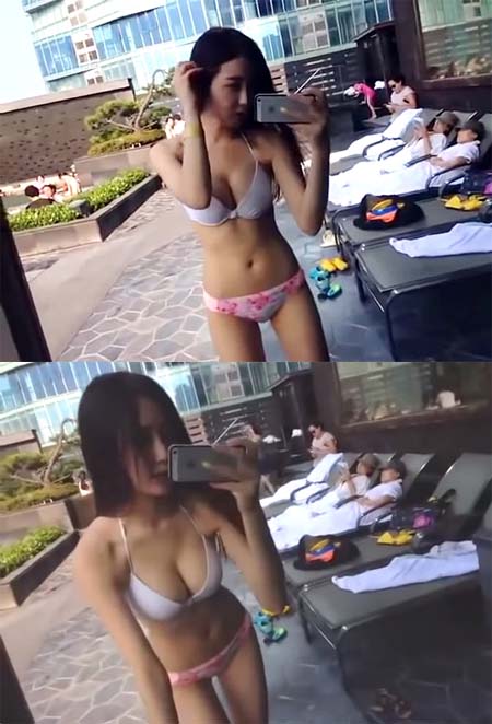 BJ 박가린은 한 수영장에서 비키니 입은 자신의 모습을 카메라에 담았다. 거울에 비치는 자신의 비키니 몸매를 방송으로 실시간 중계를 하며 특유의 볼륨을 자랑했다 특히 늘씬한 각선미와 더불어 풍만한 가슴골이 환상적이다.