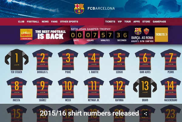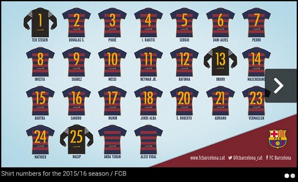 [2015/16시즌 바르셀로나 선수단의 등번호]