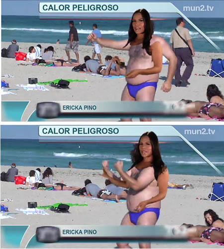 공개된 영상에는 미국의 한 방송국에서 일하는 여성 기상 캐스터가 방송 도중 그녀의 얼굴과 뚱보 남자의 몸이 합성되는 굴욕을 당했다.