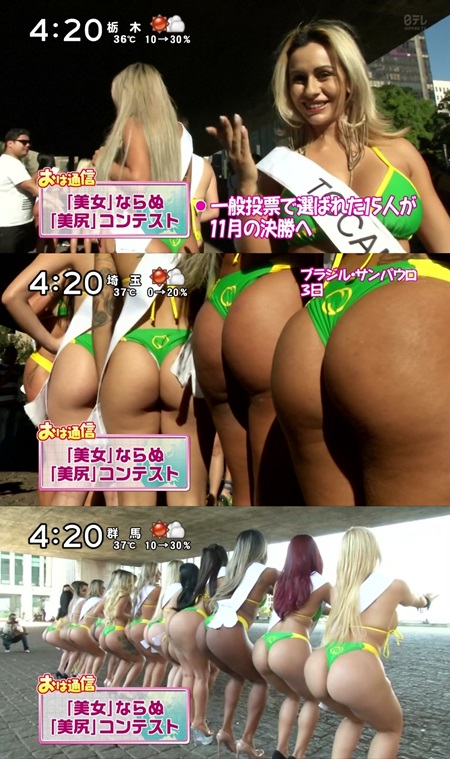브라질 국기를 형상화하는 듯한 비키니를 입고 거리에 나선 엉덩이 미녀들은 각자 섹시한 엉덩이를 과시하며 시선을 모았다.