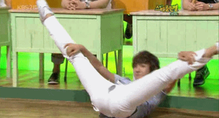 이날 이준은 격렬한 댄스를 선보였다. 특히 바닥에 등을 대고 누워 다리를 벌리는 동작을 하던 중 바지 가랑이가 찢어지는 수모를 당했다.