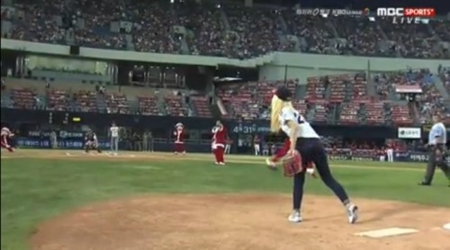 하지만 우려와는 다르게 윤보미는 포수에게 정확하게 전달되는 시구를 선보여 경기장을 찾은 관중들의 탄성을 자아내게 만들었다.