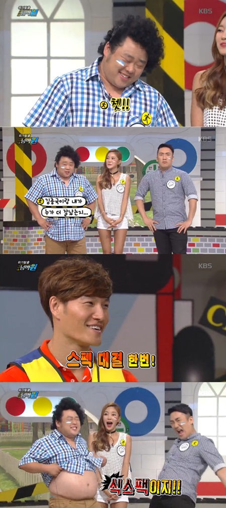 이어 이상훈이 "무슨 스팩?"이라고 말하자 송영길은 상의를 들어 올리면서 "식스팩!"이라고 말했고, 이와 함께 송영길의 출렁이는 뱃살이 공개돼 웃음을 자아냈다.