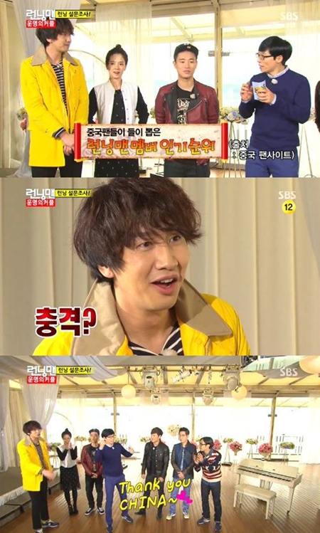 이날 중국 팬들이 뽑은 런닝맨 멤버 인기순위에서 7위는 지석진으로 4%였다. 이어 6위는 7% 이광수였다. 베트남 출국 당시 큰 인기를 얻어 아시아 프린스 별명을 지닌 이광수는 "나 아시아 프린스 아니에요?"라며 충격에 휩싸였다.