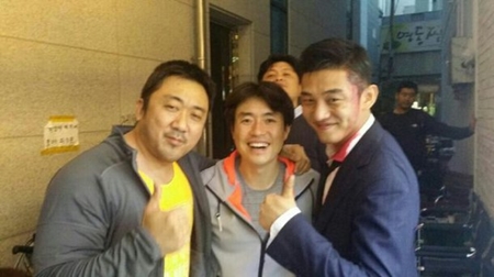 특히 여유 있는 포즈를 취한 마동석과 유아인 사이에 류승완 감독의 함박웃음은 유쾌한 촬영장 분위기를 느낄 수 있어 보는 이들의 눈길을 끌었다.