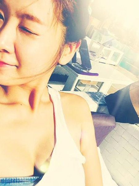 이날 공개된 사진 속에는 소유가 고개를 오른쪽으로 돌리고 한쪽 눈을 감은 채 소파에 앉아 있는 모습이 담겨있다.