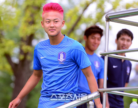 이승우는 지난 24일 17세 축구대표팀 소집을 위해 경기도 파주 NFC를 방문했을 당시 파격적인 머리 색깔로 눈길을 끌었다.