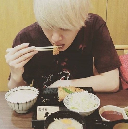 공개된 사진 속에는 한 식당에서 돈가스를 먹고 있는 김희철의 모습이 담겼다.