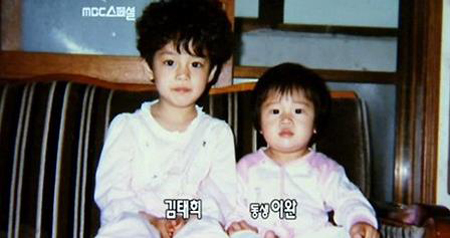당시 공개된 사진 속에는 김태희와 이완의 어린 시절 귀여운 외모를 자랑하며 소파에 함께 앉아 있는 모습이 담겨있다.