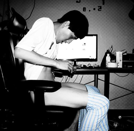 이날 공개된 사진 속에는 블랙넛이 컴퓨터 책상 앞에 앉은 채 하의를 내리고 상의를 걷어 올린 모습이 담겨있다.
